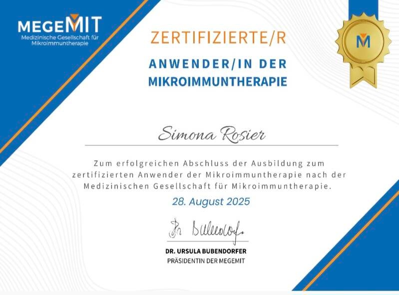Ich bin Mitglied in der Gesellschaft für Biologische Krebsabwehr e.V und der Medizinischen Gesellschaft für Mikroimmuntherapie